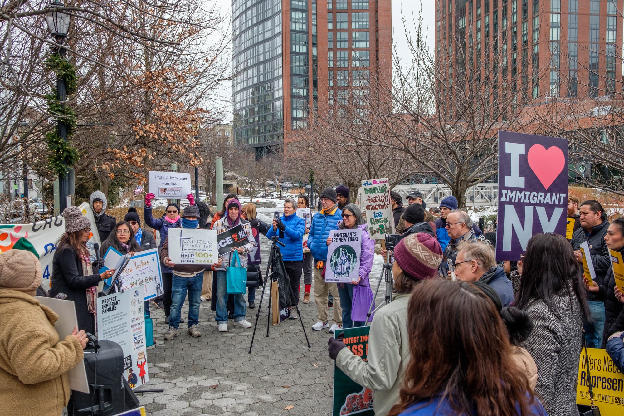 On Feb. 19, 2026, a coalition of groups gathered in Larkin Plaza in downtown Yonkers to announce a suite of initiatives before the New York State Legislature designed to respond to the growing needs of undocumented individuals. These communities face historic levels of immigration enforcement from the Trump administration. As horns honked in support from passing cars and Beeline buses and collective chants and speeches echoed out between the buildings downtown, advocates for the Campaign for Access, Representation, and Equity for Immigrant Families (CARE4IF or CARE coalition) made their case.