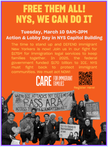 “Passing the New York for All Act, the Access to Representation Act, and the BUILD Act, and investing $175 million in immigration legal services, would create permanent protections for all New Yorkers. Together, these measures would keep local resources focused on serving New Yorkers first and ensure that everyone in immigration court has a fair chance to defend themselves and maintain their rights to due process. By acting now, our leaders in Albany can send a clear message that our state will not be complicit in Trump’s cruel deportation agenda, and we will choose dignity, safety, and justice for all families,” Roldan said.
