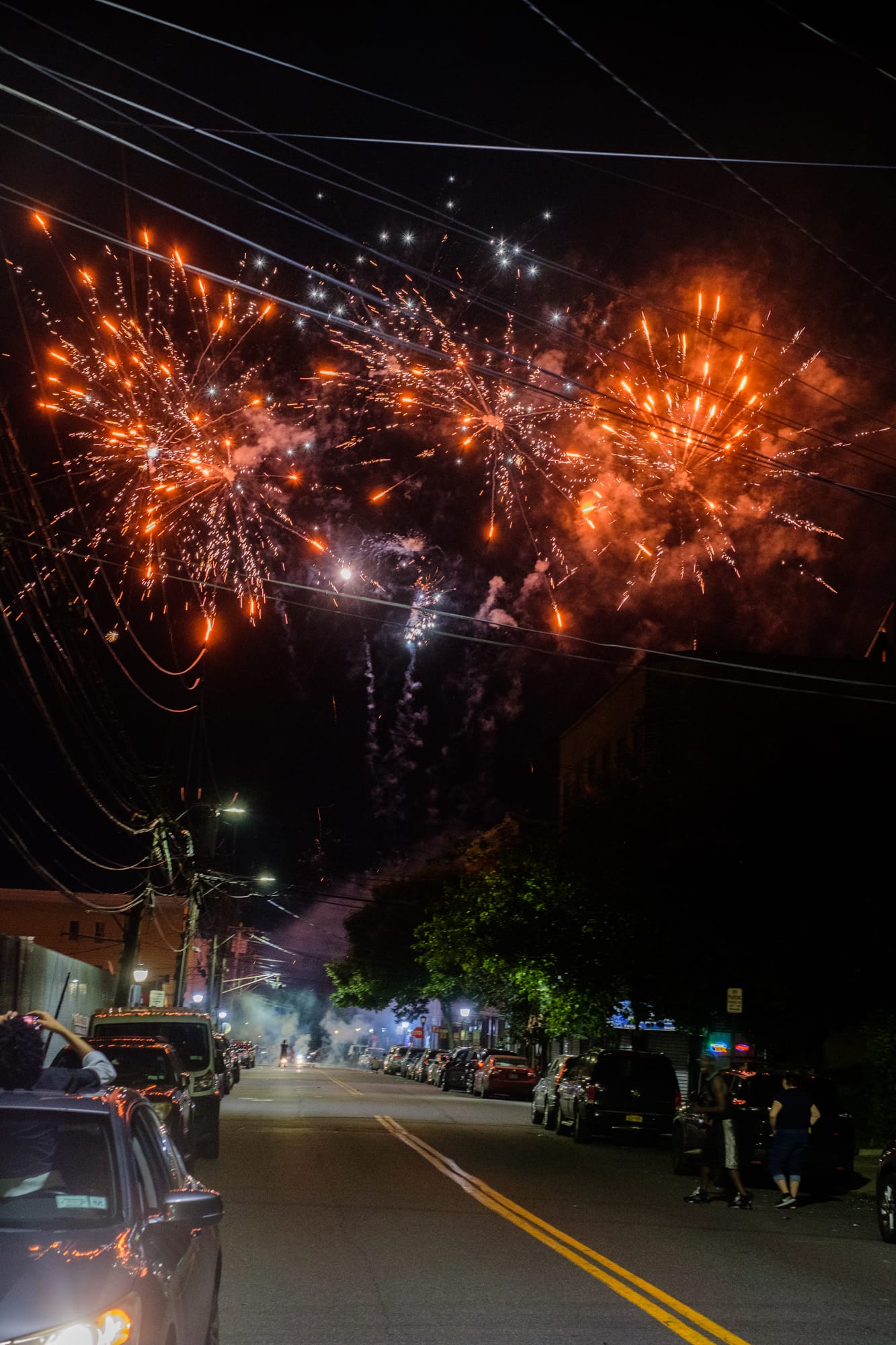 Families gathered near the footsteps of their homes or apartment buildings and enjoyed the sights from where they stood. Kids enjoyed the randomness of it all, with fireworks all around them every few minutes as revelers prepared for the next launch. In the lull, families would set off sparklers on the ground, maintaining the momentum and the children's excitement.